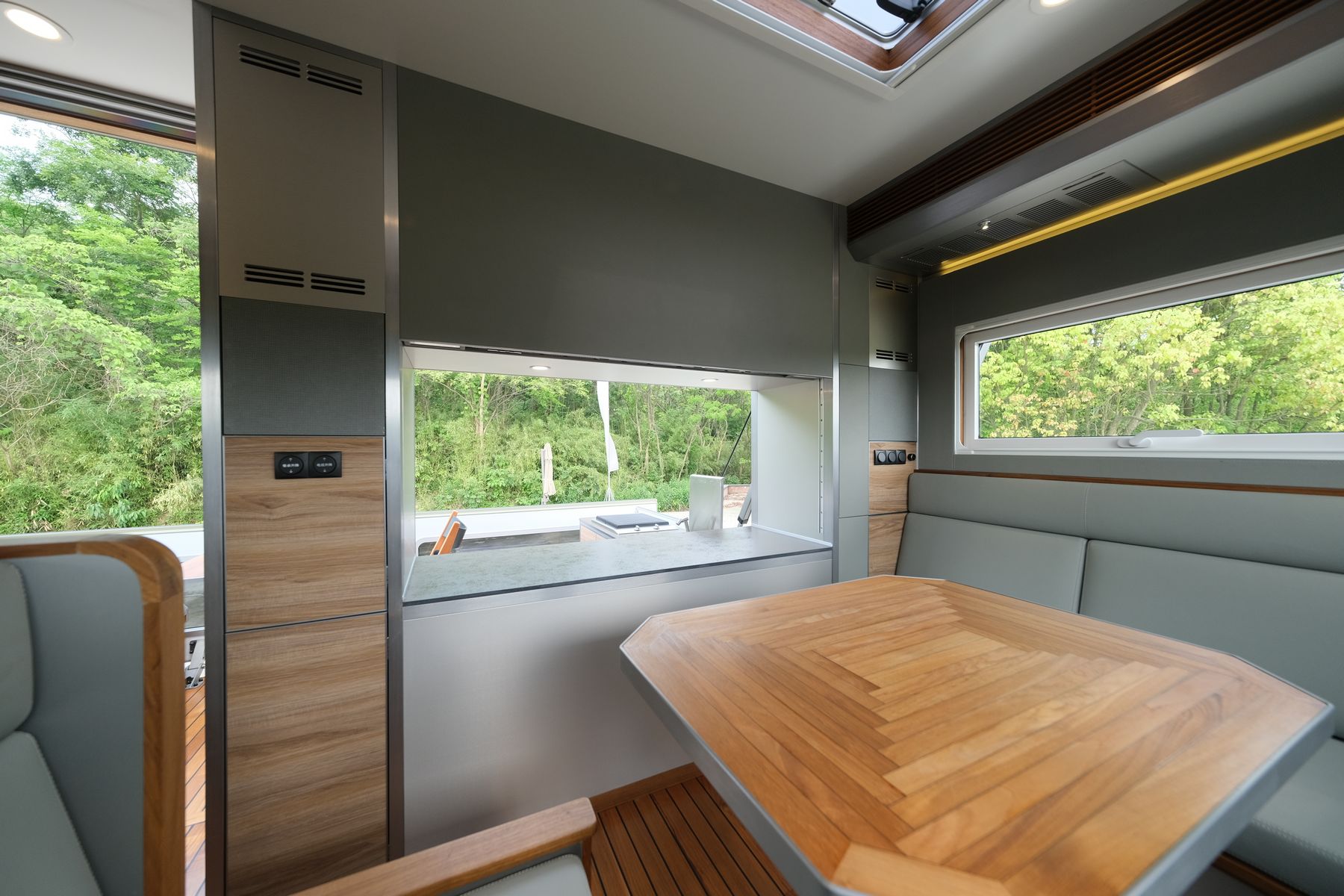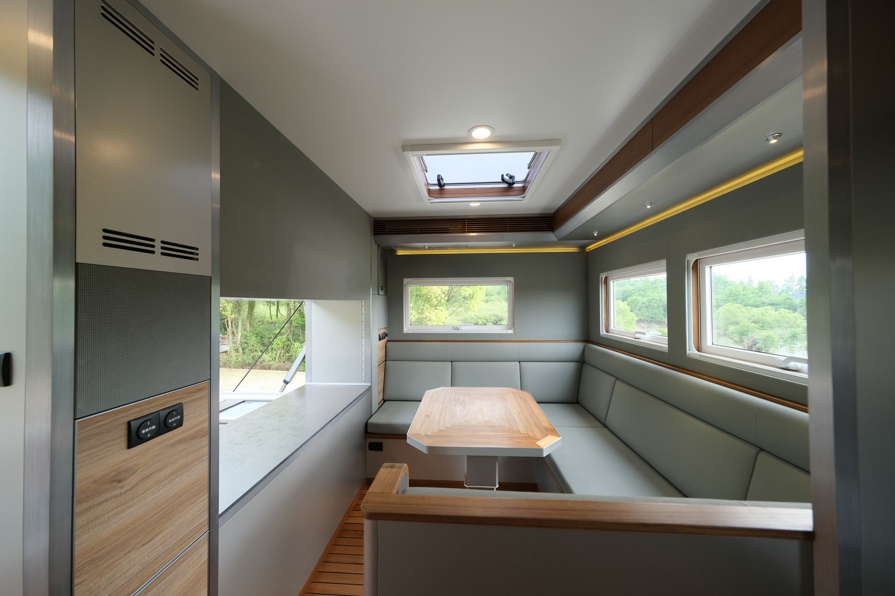 الجزء الخلفي : يو شكل 6 مقاعد أريكة مع طاولة الطعام ، يمكن أن تتحول إلى سرير مزدوج ، 1 ، 960 × 1 ، 250 ملم